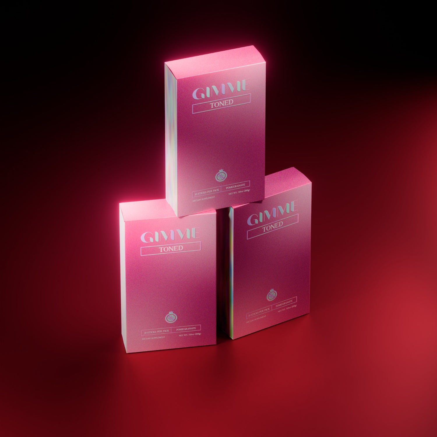 Gimme Toned are natural jelly sticks made with Garcinia Cambogia, L-Carnitine, Green Tea Extract, and White Kidney Bean Extract to help support healthy digestion, reduce bloating, and manage appetite. They're sugar-free, easy to take, and taste like pomegranate. Think of them as daily support to help your body feel lighter so you can get back to feeling like yourself.